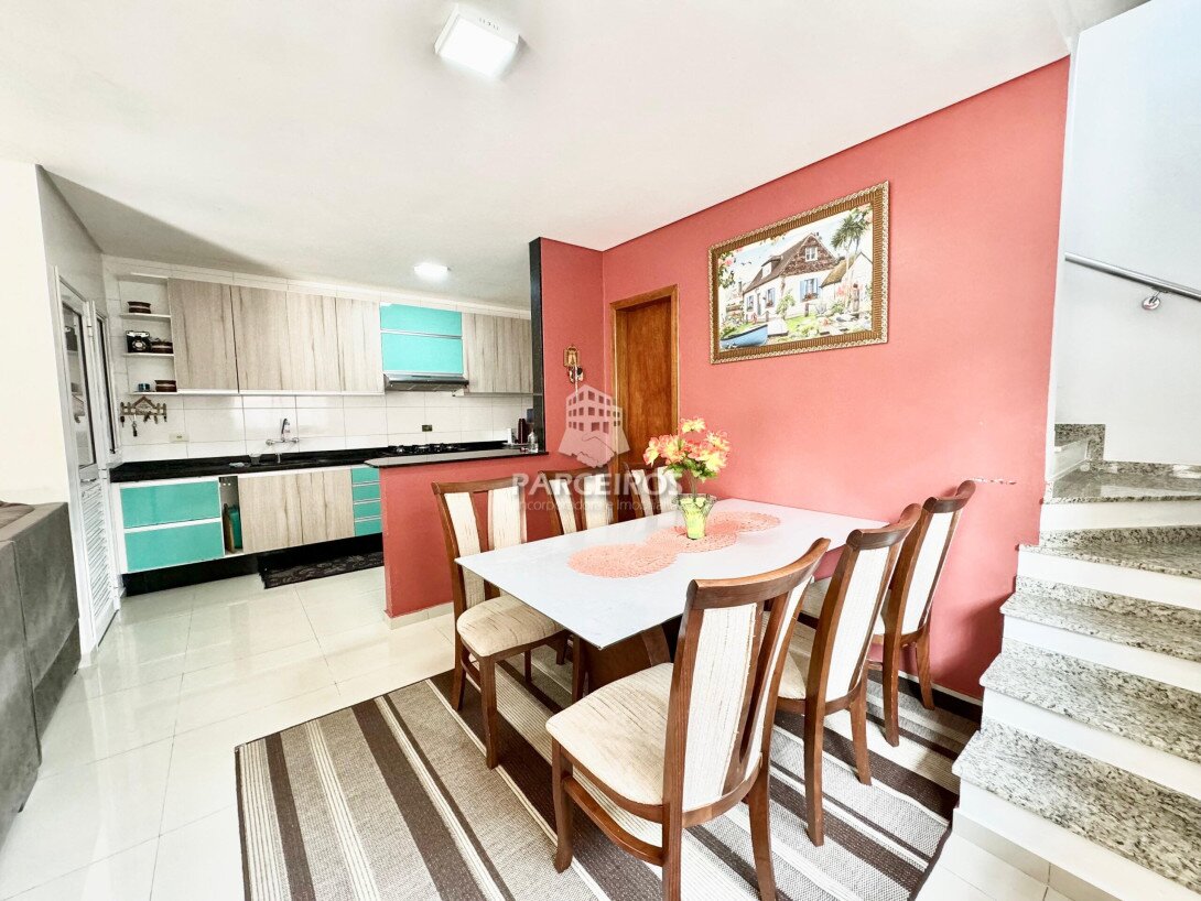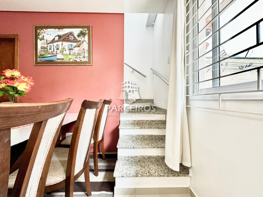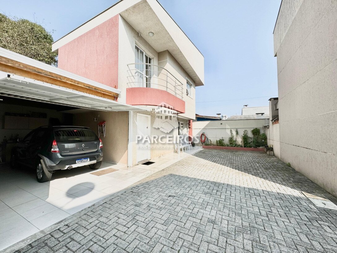 Lindo sobrado em Condomínio, possuindo 03 dormitórios sendo 01 suíte com armários, sacada linda com o sol da tarde, banheiro social e lavabo com armário, escada em granito, cozinha ampla planejada e em conceito aberto com sala de estar e jantar, ampla área gourmet e lavanderia com a vaga coberta. Vaga para até 5 carros, na parte externa, Condomínio pequeno sendo apenas 2 sobrados internos em ótima localização na Rua Lauro Corona, no Pinheirinho, com fácil acesso aos bairros Cic, Capão raso.