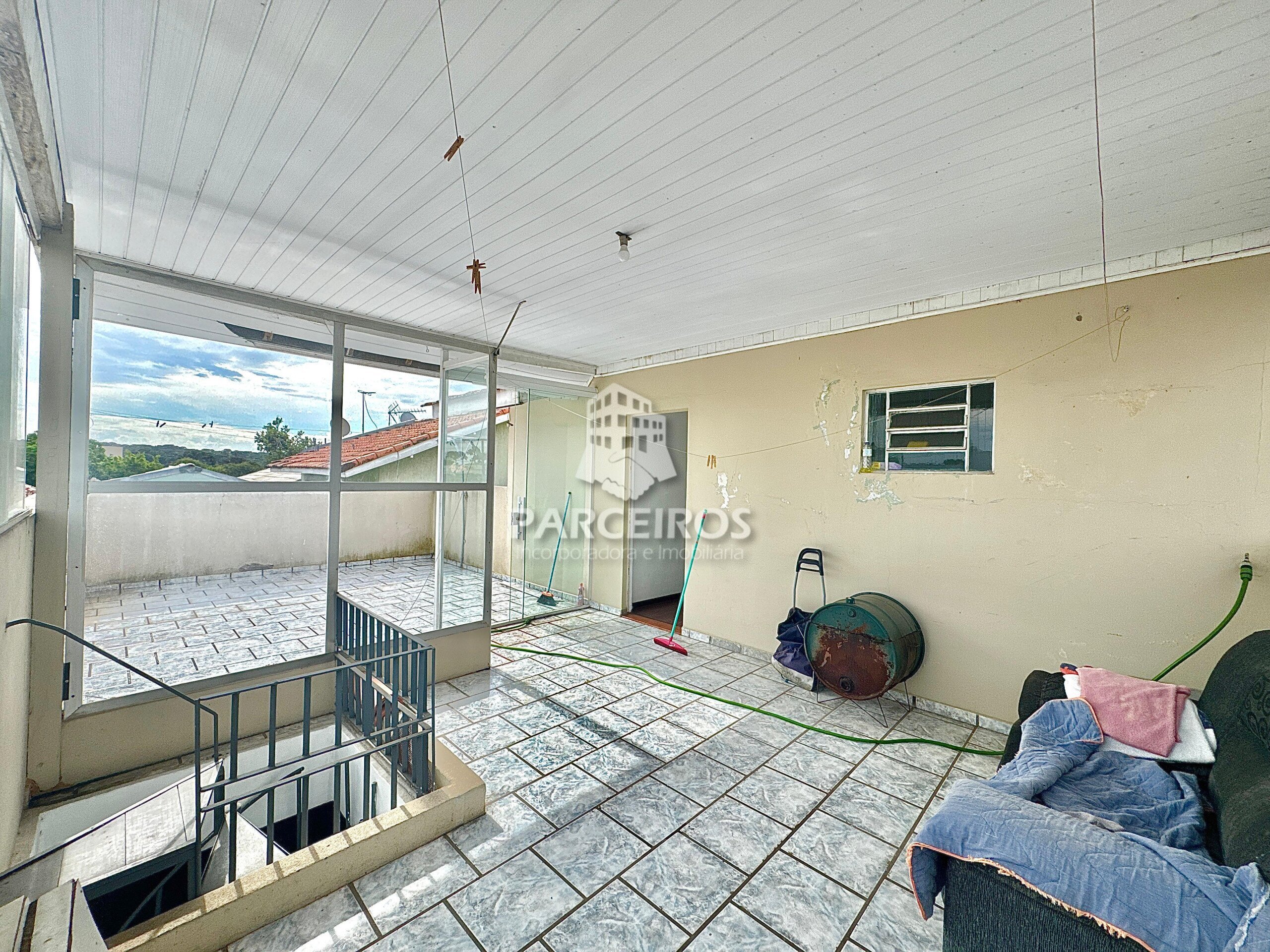Area coberta ampla ao lado das vagas, terraço espaçoso.