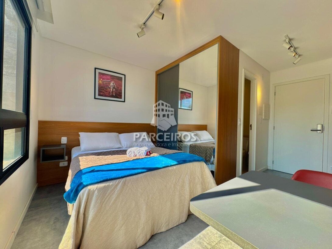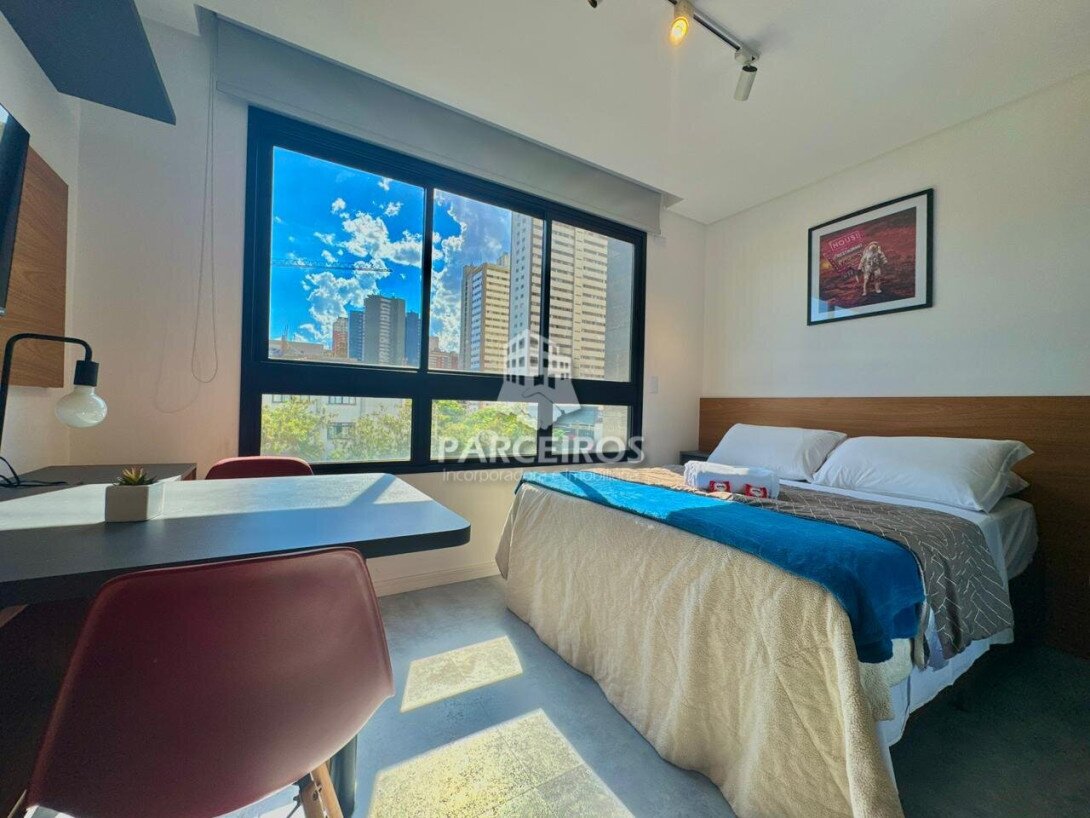 O studio possui 18 m²,está no 3° andar, face oeste, (sol da tarde) com vista livre, oferecendo ótima iluminação natural e conforto. Totalmente mobiliado e com eletros , o imóvel já está ativo em locações via Housi, garantindo retorno imediato para quem deseja investir.
